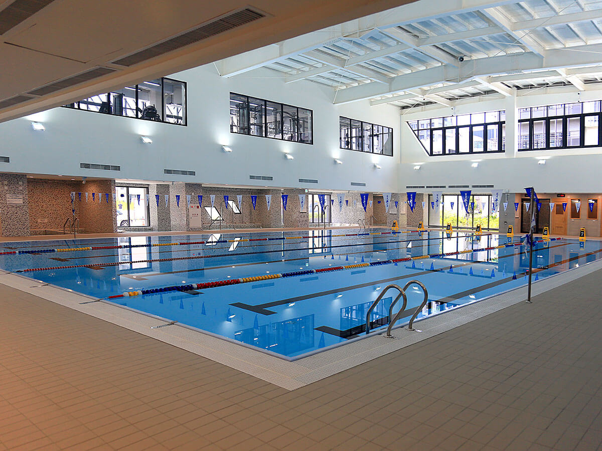 新竹市香山綜合運動館,坐落於新竹市香山區,本場館包含一座主泳池、SPA池三溫暖設施以及兒童池提供香山區的民眾使用,採用珍珠岩精密過濾器及水質監控系統提供泳池良好的水質,並且使用熱泵熱水設備提供場館淋浴及泳池加熱以達到綠能環保的訴求。